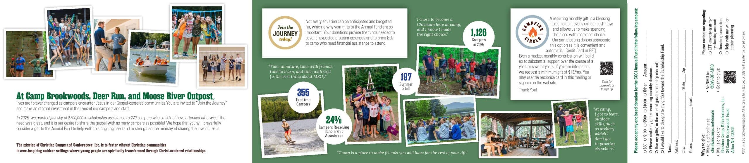 My gifts, your gifts, no matter the size, will help capture many, many more campers’ hearts for the Lord. The eternal impact of God’s work at Camp Brookwoods, Deer Run, and Moose River Outpost will echo in our world and around the campfire in Heaven.
